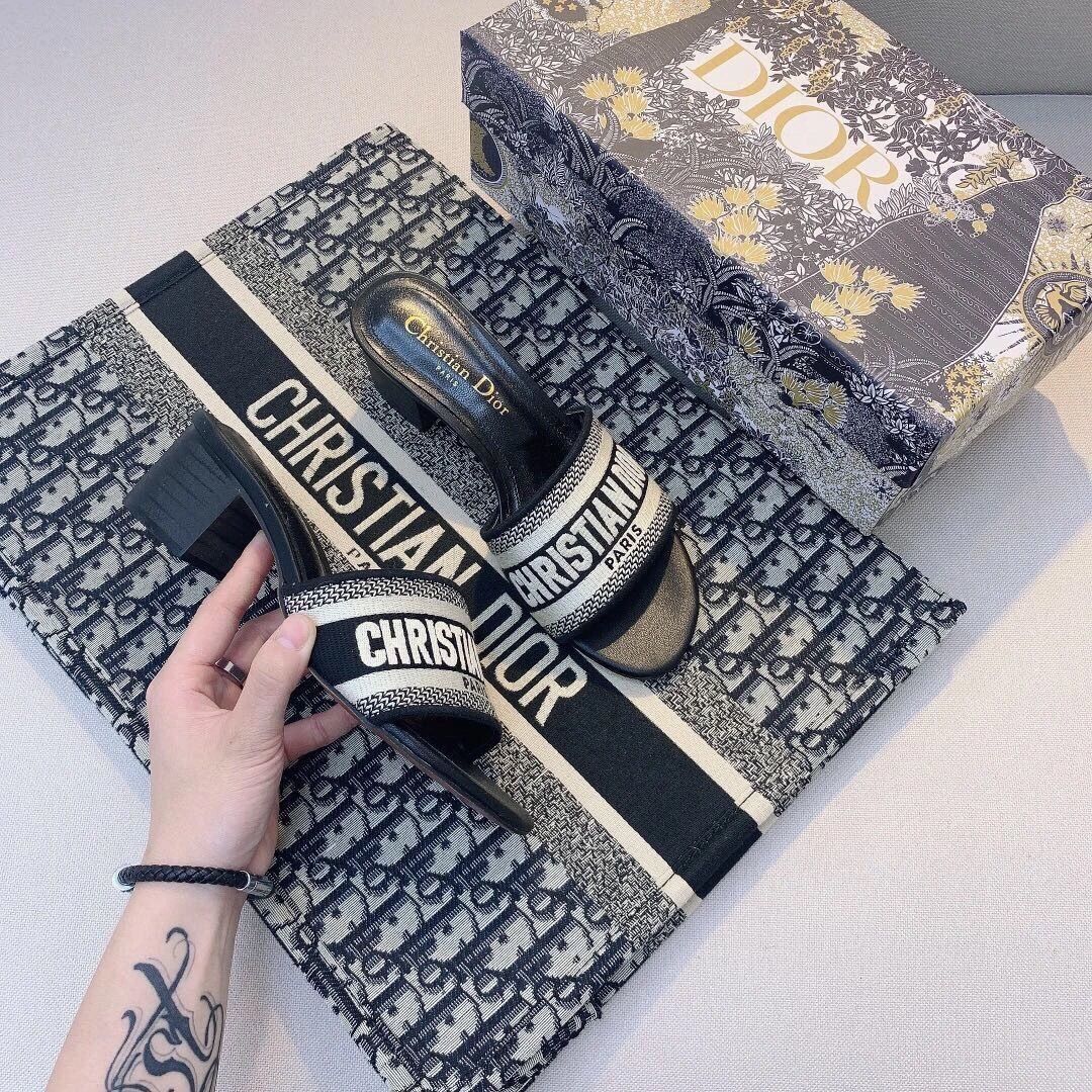 - The Dway cotton strappy slide is a classic piece. Bold logo embroidery accents the vamp. The 4cm block heel is stylish and versatile for a modern look.
